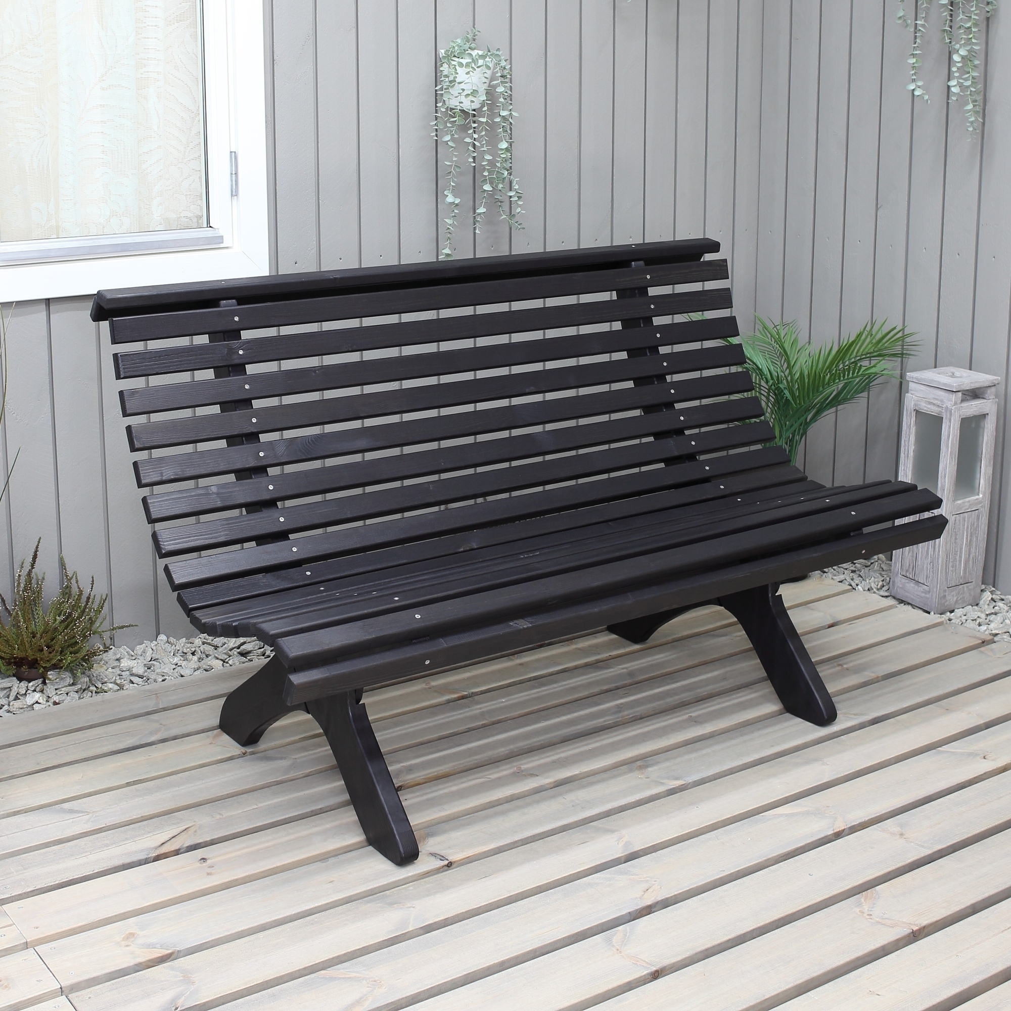 En klassisk svartlaserad parkbänk tillverkad av furu att ha på uteplatsen för att skapa en parkkänsla i trädgården. Bänken är formgiven efter klassiskt skandinavisk möbeltradition.