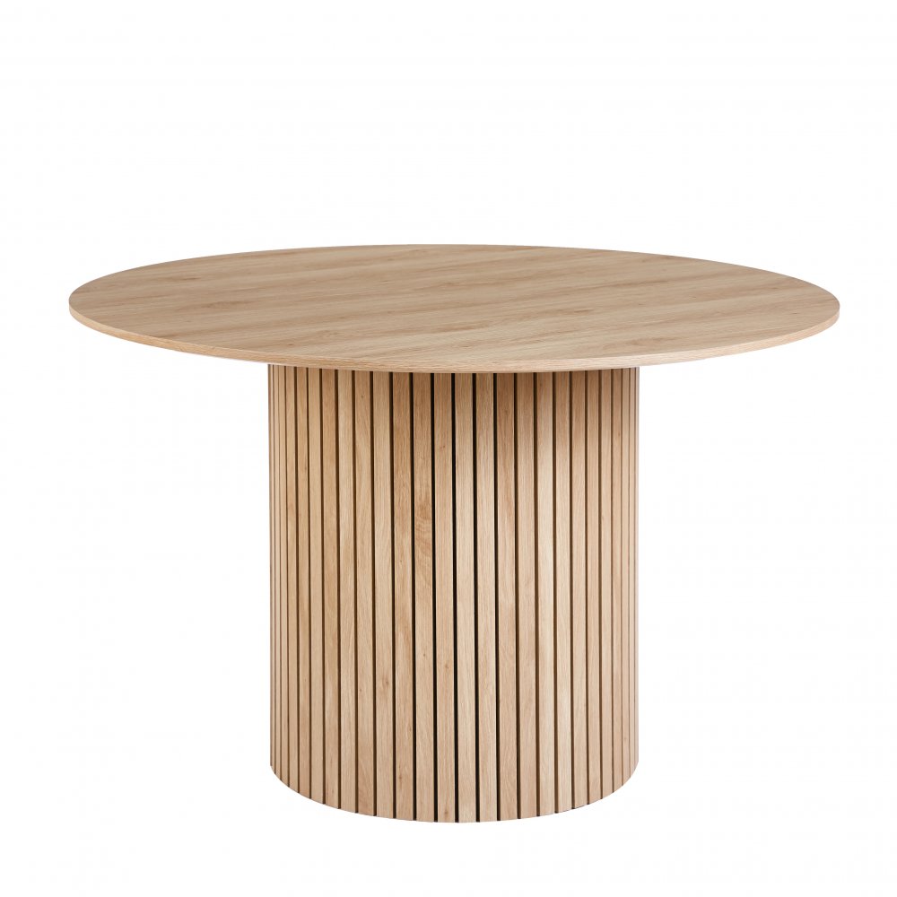 Matgruppen Ludvig & Brandon kombinerar nordisk elegans med naturliga material och tidlös design. Det runda Ludvig matbordet har en slimmad form med bordsskiva i MDF med ekfoliering och ett matchande underrede i trä, vilket ger ett harmoniskt och modernt uttryck. Den generösa diametern på 120 cm gör bordet idealiskt för 4–5 personer och skapar en inbjudande plats för måltider och samvaro.