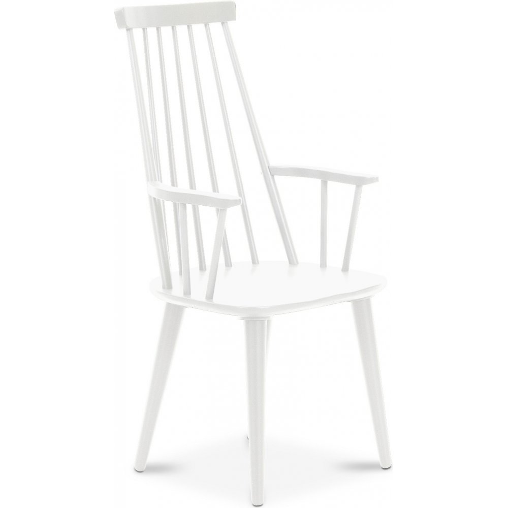 Matgrupp från Skånska Möbelhuset, Klassiskt runt matbord Rosvik 120 cm diameter i grålackat trä. Fyra stycken vita Dalsland Pinnstolar med armstöd!