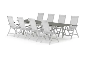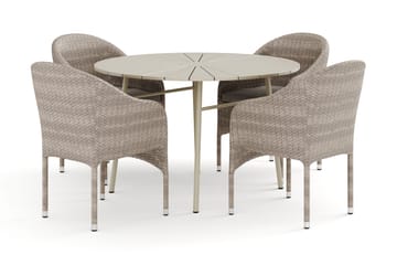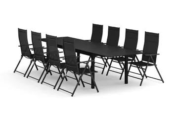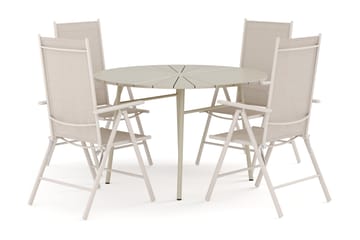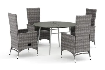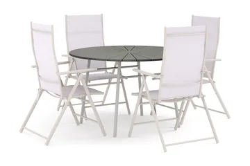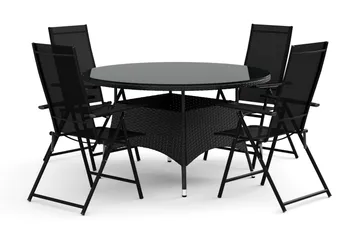 Thor utomhus rund matgrupp 140 cm med 4 Sanna positionsstolar, Svart
