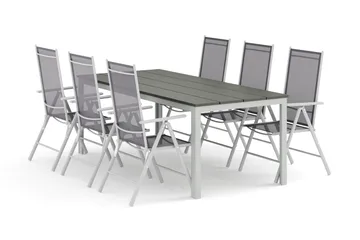 Monaco utomhus matgrupp förlängningsbart 150-250x90 med 6 Monaco Light positionsstolar, Svart/Grå